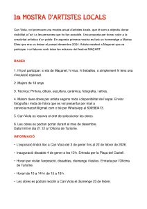 1ª Mostra d’artistes locals TwitterFacebookPinterestGoogle+RSS Previous article Aplec de Sant Miquel Next article Aprovat definitivament el projecte per renovar 127 làmpades de l’enllumenat públic