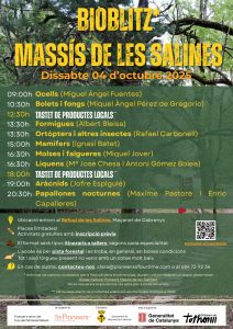 Bioblitz: Massís de Les Salines + Add to Google Calendar + iCal export Date 041025 Time 9:00 am - 8:30 pm Location Les Salines Les Salines Category Esdeveniments culturals Xerrades i presentacions