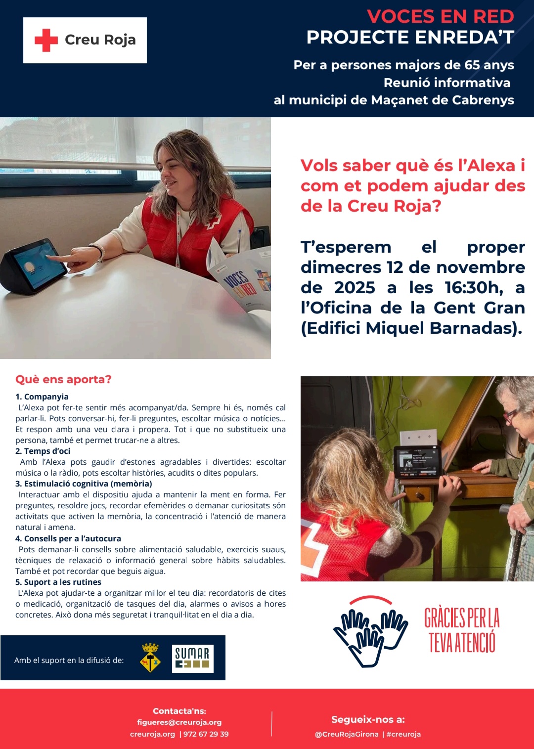 Xerrada dispositiu Alexa (Creu Roja) + Add to Google Calendar + iCal export Date 121125 Time 4:30 pm Location Edifici Miquel Barnadas Maçanet de Cabrenys Category Xerrades i presentacions
