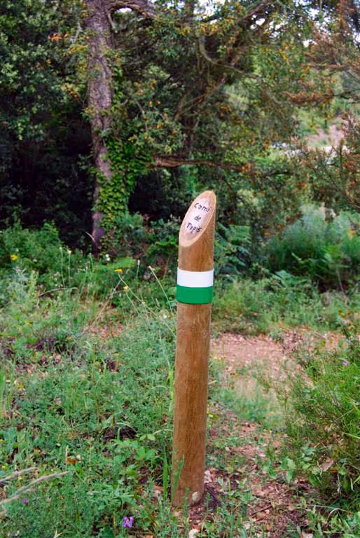 L’itinerari comença a la Plaça de l’Oficina de Turisme i ens enfilem per la pendent de l’aparcament, a mà esquerra. Prenem el camí entre les cases, al costat del supermercat. Arribem a un carrer asfaltat de la urbanització i continuem a la dreta, seguint amunt. Just abans d’arribar a la carretera de Maçanet a Tapis tranquem a la dreta i enfilem una pujada fins el bosc.