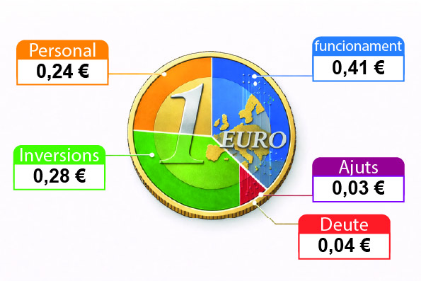 De cada euro del pressupost municipal, aproximadament 24 cèntims es destinen a personal, 41 cèntims a fer funcionar el poble, 28 cèntims a inversions, 3 cèntims a ajuts a serveis socials i entitats del poble, i 4 cèntims al deute.