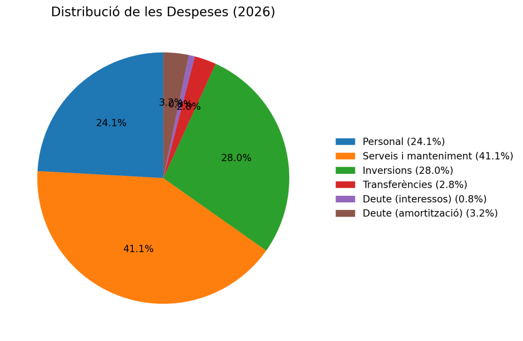 A diferència del 2025, que incorporava actuacions extraordinàries molt importants, el pressupost 2026 reflecteix una estructura més ajustada a la gestió ordinària del municipi.